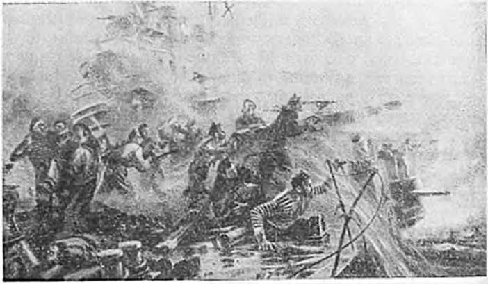 На палубе «Варяга» во время боя (с картины П. Т. Мальцева).