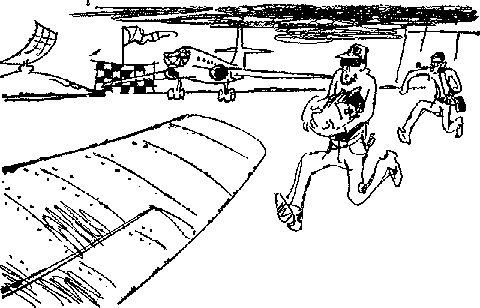 И тут мы увидели, как от аэропорта, прижимая к животу какой-то тюк, вскачь несется Паганель, а за ним гонится дядя Коля с рюкзаком в руках.