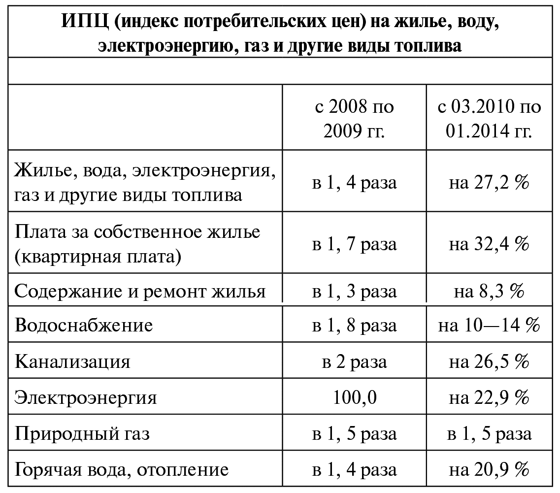 Стабилизирующим фактором стало также то, что за 2010–2013 гг. не произошло масштабных административных повышений цен, в первую очередь в жилищно-коммунальной сфере. В частности, цены на газ для населения оставались без изменений в течение последних 40 месяцев, а тарифы на электроэнергию – 32 месяцев.