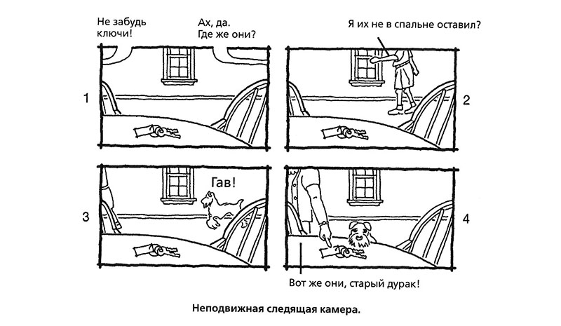 Неподвижная следящая съемка оставляет ощущение того, что вы подслушиваете или наблюдаете за жизнью персонажей изнутри, не вторгаясь в нее. Для этого используется стационарная камера, а персонажи движутся в кадре туда-сюда. Камера «следит» за ними из своего положения.