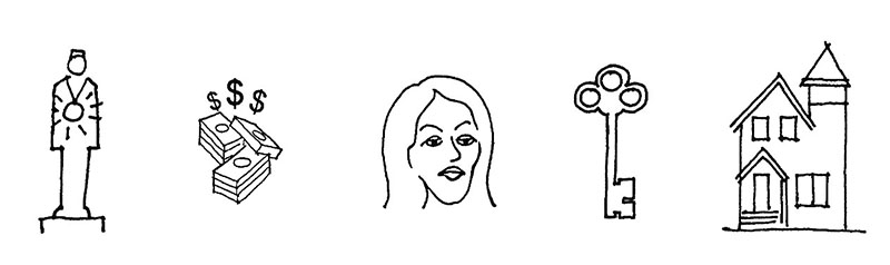 Предыстория – это события, которые происходили до начала фильма: детские травмы, недавние кризисы, давние обиды, история места действия и многое-многое другое. Предыстория должна проявляться неявно, через случайные, но эффективные намеки. Например, женщина в костюме от Шанель, пришедшая на биржу труда, легко вызовет у современного зрителя мысли о недавних бурных переменах в жизни героини. Персонаж, который спрашивает: «Ты все еще любишь его?» скажет более чем достаточно об истории любви своей собеседницы. Или, например, с помощью всего одной сцены можно рассказать о давней склонности. В разгар спора мужчина набрасывается на жену, а та в ответ швыряет в него туфлей на высоком каблуке. Туфля попадает в дверь, на которой видна дюжина отпечатков от таких ударов.