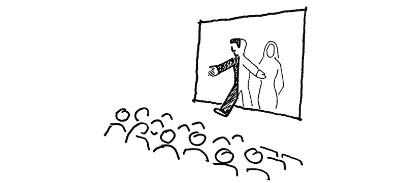 События на экране и диалоги необходимо подавать, осознавая их связь с четвертой стеной. Например, если персонаж слишком уж открыто излагает главный посыл фильма, такое разрушение четвертой стены покажется зрителю некомфортным. Есть более тонкий способ преодолеть ее: голос рассказчика за кадром, который комментирует ход событий, давая зрителю подсказки.