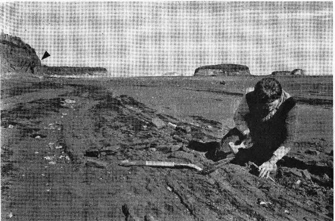 Летом 1985 года мы вернулись на то место, где был обнаружен наш трителедонт. Содержащий ископаемых слой находился в самом низу обрыва, где несколько лет назад обвалился небольшой его фрагмент. Чтобы работать на этом месте, нужно было правильно рассчитать время: во время прилива туда было не добраться, потому что вода слишком близко подходила к нужной нам точке. Я никогда не забуду волнение, охватившее меня в первый день когда мы огибали скальный выступ, чтобы вновь увидеть тот небольшой участок ярко-оранжевого песчаника. Запомнилось не то, что мы увидели, а то, чего не увидели – большей части той породы, с которой мы работали в прошлом году. За зиму она был уничтожена эрозией. Наше замечательное местонахождение, содержавшее остатки прекрасных трителедонтов, было смыто волнами.