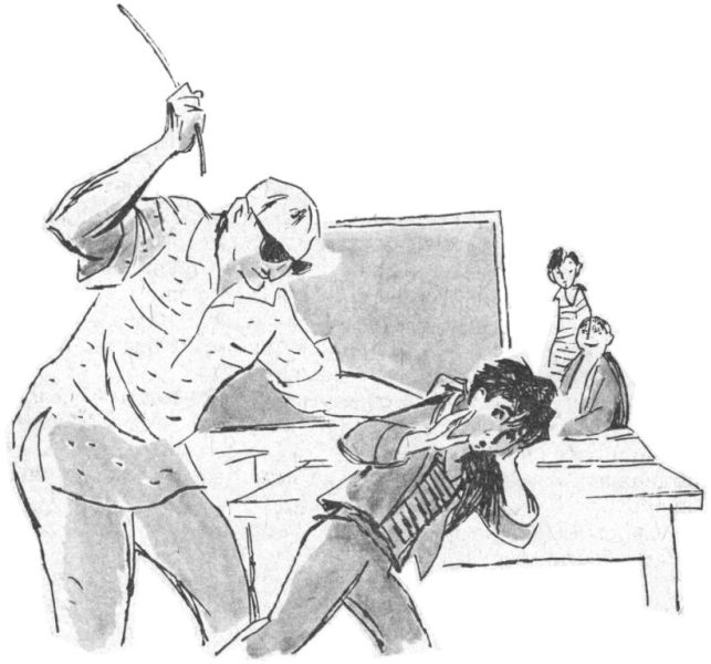 «Учителя нашей школы били нас. Особенно злой был один учитель, он на урок приходил с палкой и бил нас так, что мы удивлялись, как у него палка не сломается. Но однажды она всё-таки сломалась. Вот как было дело.