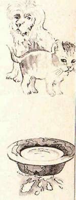 Я поставила миску с простоквашей на пол. Шарик любезно помахал коротким хвостиком, понюхал молоко. Васька осторожно дотронулся до него розовым язычком. Потом оба обиженно попятились. А Петр Петрович злорадно захохотал. Мне захотелось выйти из неловкого положения. И я спросила строго: