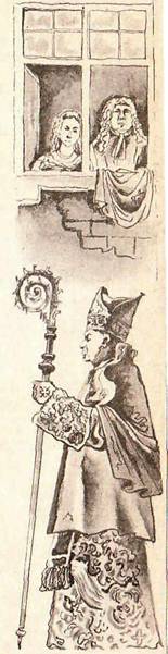 В полдень дормезы въехали в городок. Полный пожилой епископ в шелковой сутане с трудом вылез из кареты.