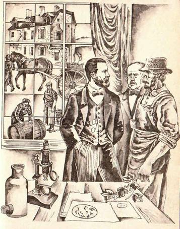 С каждым днем Пастер все позднее уходит из лаборатории. Несмотря на усталость, он чувствует огромное удовлетворение. Ом воодушевлен, обрадован! Кажется, он понимает, почему бродит пиво, кисмет молоко, становится уксусом вино…