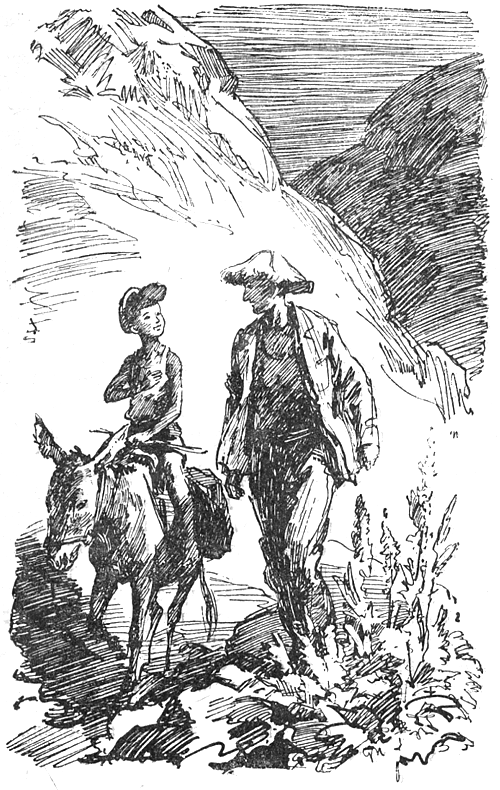 Я взял петуха на руки и долго следил, как ослик с Гришей на спине мелькал среди утёсов. Наконец они скрылись за серым выступом, и я сразу почувствовал, что остался на горе один.