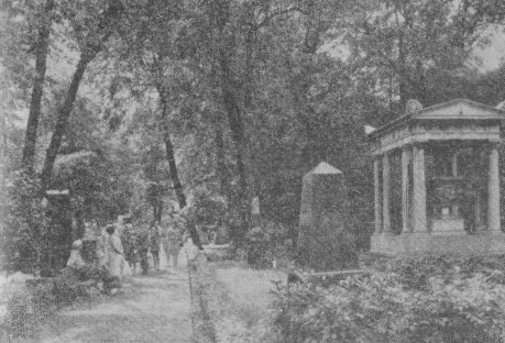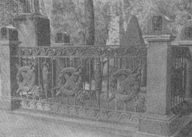 Рядом погребен замечательный представитель российской словесности XVIII века, автор бессмертной комедии «Недоросль» Д. И. Фонвизин, о котором Пушкин сказал: «Сатиры смелый властелин». Над мо-гилой гранитный саркофаг, обнесенный скромной оградой.