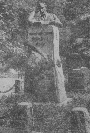 Надгробие Битнера – серый гранитный монолит – завершает каменная книга, воспроизводящая номер «Вестника знания».