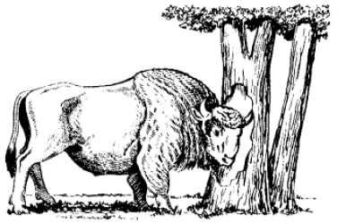 Рис. 108. Зубр, маркирующий дерево (по И. И. Барабаш-Никифорову, А. Н. Формозову, 1963)