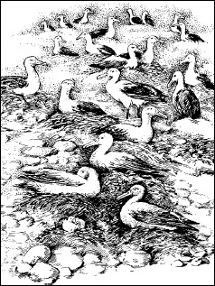 Б – гнездовье альбатросов на Сандвичевых островах (по А. Э. Брему, 1911);