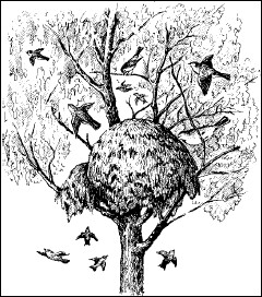 Г – общее гнездовое сооружение африканского общественного воробья (по Н. Н. Карташову, 1974)