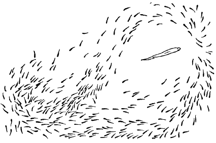 Стаи рыб очень изменчивы по величине, форме, плотности. Они часто переформировываются, иногда по нескольку раз в сутки (рис. 115). Обычно рыбы группируются в стаи лишь в светлое время суток, при зрительном контакте с другими особями, и рассредоточиваются на ночь. Защитная роль стайных объединений рыб очень велика. В опытах одиночные рыбки вылавливаются хищником в несколько раз быстрее, чем члены стаи. В группе осуществляется «круговой обзор», благодаря которому хищнику труднее приблизиться незамеченным. Кроме того, многочисленность двигающихся особей дезориентирует врага. Тела рыб, непрерывно меняющих направление движения, создают мерцание, затрудняющее фиксацию взгляда на отдельных особях, и делают невозможными целенаправленные броски. Стая быстро маневрирует при опасности, обтекая хищника, который, бросившись в ее середину, оказывается в пустоте (рис. 116). Для поведения рыб в стае характерен имитационный рефлекс – подражание действиям соседей.
