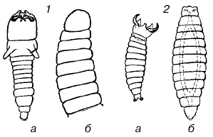 1– Opius fletcheri; 2 – Galesus sylvestrii (a – первый возраст, б – второй возраст)