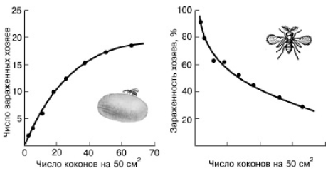 Таким образом, истребление жертв и поражаемость хозяев зависят от численности врагов, но и обилие последних также определяется численностью объектов их питания.