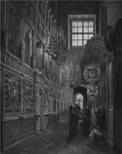 С. Шухвостов. Внутренний вид Алексеевской церкви Чудова монастыря в Московском Кремле. 1866 г.