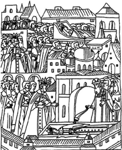 Похороны жены Ивана Грозного – царицы Анастасии. Миниатюра из Лицевого летописного свода. XVII в.