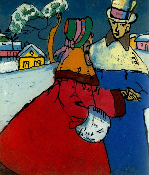 Что касается еще большей проблемы с давней подругой и ученицей Кандинского Габриэлой Мюнтер, которая была очень хорошей художницей (правда, после расставания с Кандинским она утратила вдохновение), то, изучив всю их обширную переписку, я полностью согласилась с мнением Нины, изложенным в ее книге. В 1961 году, незадолго до смерти Мюнтер, я, опять же по просьбе Рётеля, отправилась к ней с визитом. Мне запомнилась только ее любознательность: она попросила подробно рассказать о новом Музее Гуггенхайма, который ей так хотелось посетить. Сотни писем Кандинского – он писал ей каждый (!) день во время своих поездок в Россию – обнаруживают его большую любовь и новые грани его удивительной личности. В более редких ответных письмах Мюнтер любви меньше, зато мы видим постоянные упреки, непонимание, признаки депрессии и накапливающегося разочарования ввиду того, что Кандинский все время откладывал оформление их отношений. Многочисленные автопортреты и фотографии Мюнтер того времени подтверждают это впечатление от ее образа. В сущности, отношения, едва начавшись, уже подверглись испытанию из-за несовпадения темпераментов. Был ли Кандинский способен на большую любовь? Об этом говорят его письма. Могла ли Габриэла стать счастливее с другим мужчиной? В этом я сомневаюсь.