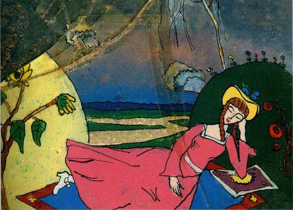 Нина Кандинская. Спящая женщина. По рисунку В. Кандинского. 1918. Стекло, масло, фольга. ГМИИ им. А.С. Пушкина.