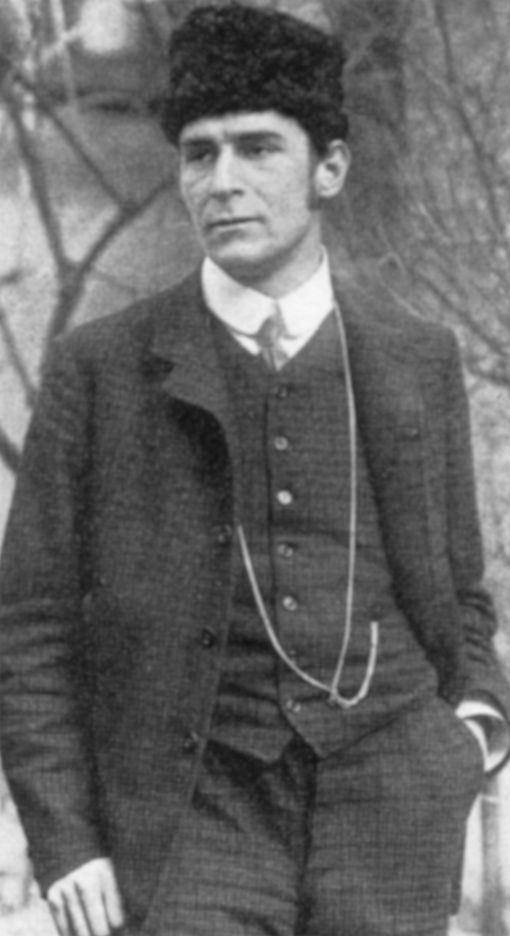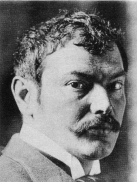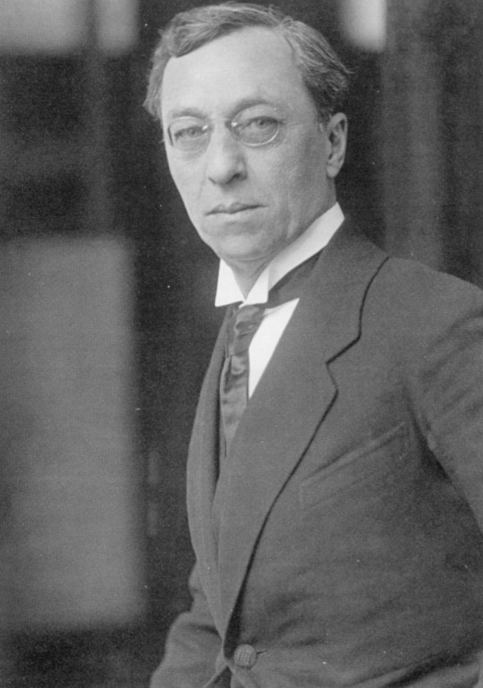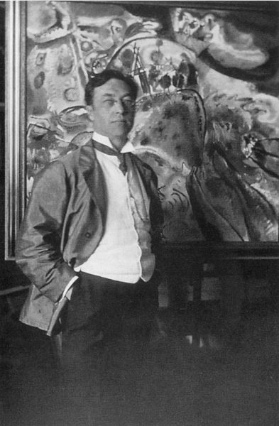 Василий Кандинский на фоне картины «Маленькие радости». Фото Г. Мюнтер. Мюнхен, 1913.
