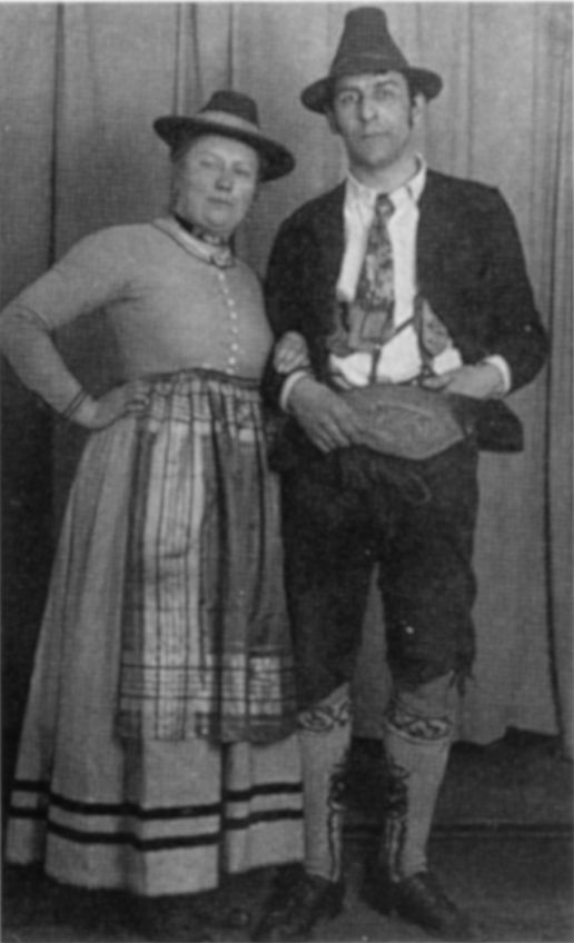 Мария и Франц Марк в баварских национальных костюмах. Фото И. Пёльманна. Мюнхен, 1910.