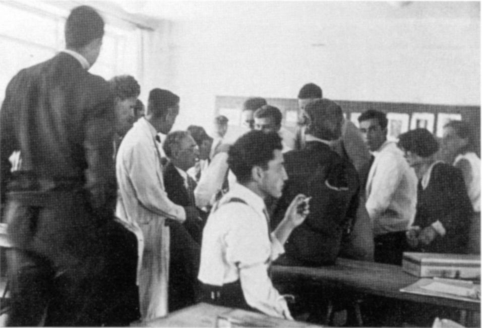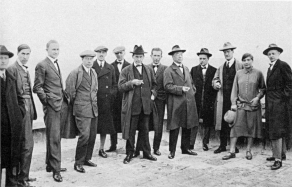 Мастера Баухауса на крыше здания школы в Дессау. Слева направо: Й. Альберс, Х. Шепер, Г. Мухе, Л. Мохой-Надь, Х. Байер, Й. Шмидт, В. Гропиус, М. Брёйер, В. Кандинский, П. Клее, Л. Файнингер, Г. Штёльцль, О. Шлеммер. 4 декабря 1926.