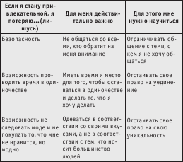 Впишите в таблицу список тех идей, которые вы получили в предыдущем упражнении, отвечая на вопрос «Что вы действительно можете потерять, если станете привлекательным челове-, ком?», и перефразируйте этот список иначе, ответив на вопрос «Что для меня важно», например, так: