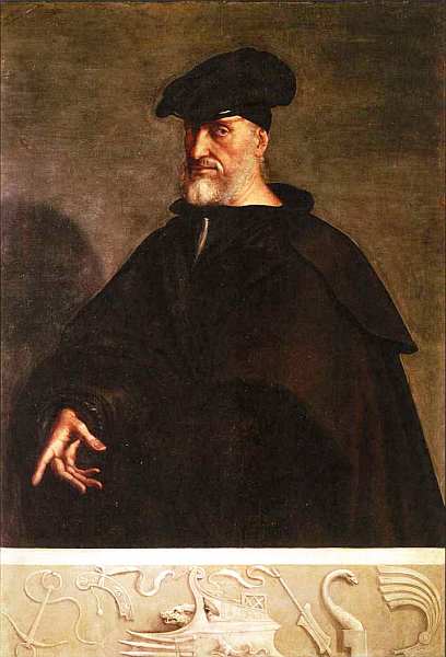 Этот портрет попал в собрание Дориа-Памфили после 1790 из княжеского дворца в Генуе палаццо Принчипе-а-Фассоло. Адмирала Андреа Дориа (1466–1560) земляки называли Отцом отечества – он сделал Геную независимой от французского протектората. В это время Дориа принимал деятельное участие в поддержке папства против германского императора. В 1526 папа Климент VII пожелал, чтобы его лучший живописец (после смерти Рафаэля именно венецианец Дель Пьомбо стал самым ярким и востребованным портретистом) написал портрет доблестного мужа и мудрого политика во время его посещения папского двора для ведения переговоров.