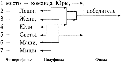 В играх четвертьфинала встречаются победители парами по жребию. Теперь и Юра будет иметь противника. А дальше – финал.