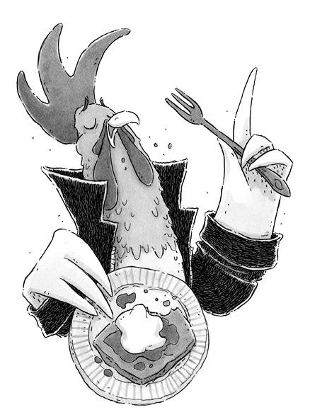 Продвигалась процессия не очень быстро, потому что Педро то и дело просил бабушку Агату притормозить. Первый раз они остановились, когда петух решил осмотреть новые зелёные контейнеры для мусора. Он склонил голову набок, приложил крыло к бородке и вперил в мусорные баки критический взгляд.
