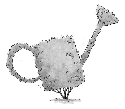 Вскоре они добрались до городской площади. Там Педро снова велел сделать остановку. Бабушка Агата затормозила около куста, постриженного в форме садовой лейки.