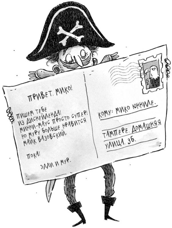 – У меня есть открытка из Диснейленда, на ней изображены очень страшные пираты! – заявил Мики. – Я могу завтра её показать.