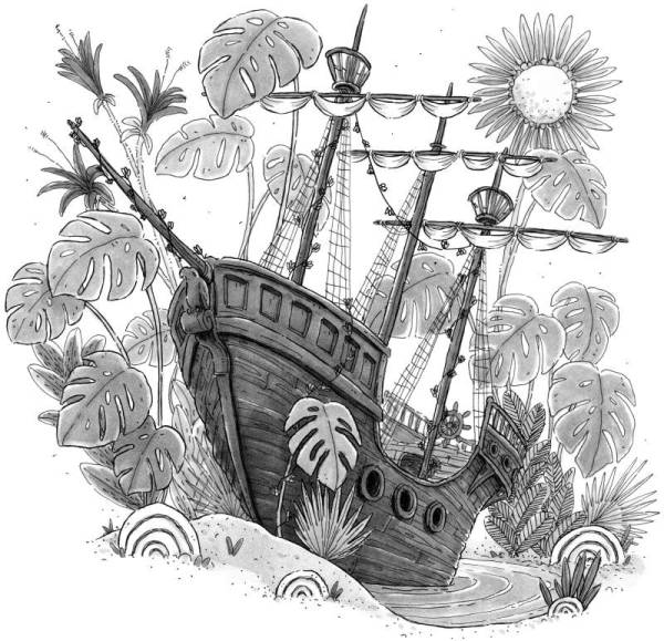 – Нет, это нам не поможет. Зато вы будете петь и танцевать, – объяснил Фрэнк. – Мы с Агатой сделали для вас копию «Роберты». Помните, как мы наводили с ней ужас на все моря? Этот корабль – основная часть моей композиции. Я окружил её роскошными растениями и цветами. И раз уж вышло так, что вы ожили, я немного поменял план. Теперь вы будете петь на палубе свирепую пиратскую песню!