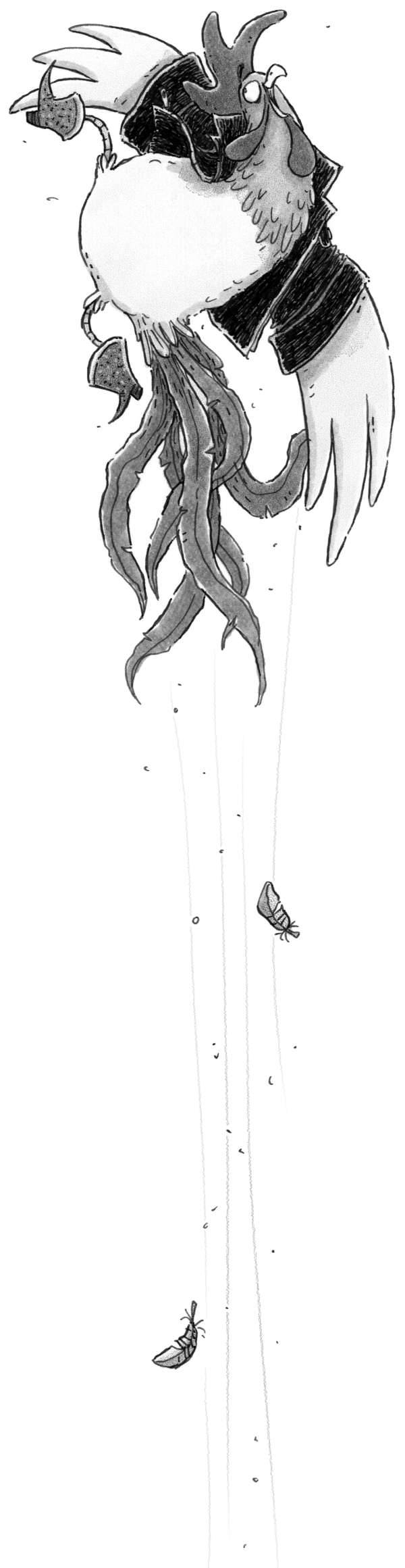– Её написал Педро, – сказал Фрэнк, и петух раздал пиратам листочки, на которых он крошечными буквами нацарапал слова песни собственного сочинения.