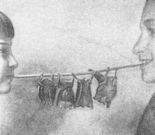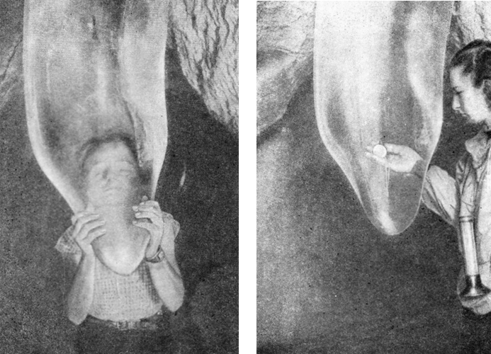 Мари и Раймонд Кастере, вполне освоившиеся с летучими мышами, играют с ними.