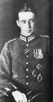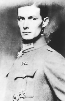 Вернер Фосс. На его мундире видны «Pour le Merite» и Рыцарский крест ордена Дома Гогенцоллернов. Одержал 48 побед, пока не погиб в ставшем классическим воздушном бою с 56-й эскадрильей в октябре 1917 г.