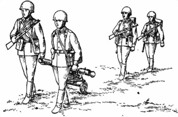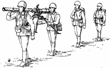 Рис. 43. Переноска станкового гранатомета СПГ-9М в боевом положении