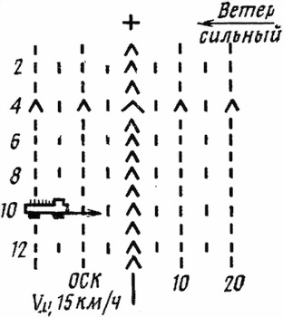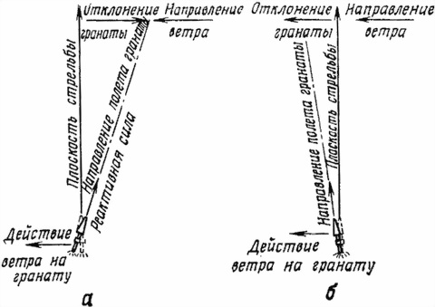 Рис. 48. Влияние бокового ветра на полет гранат:
