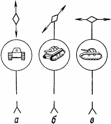Рис. 50. Определение направления движения цели по видимым ее сторонам: