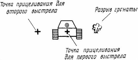 Рис. 55. Корректирование огня отметкой по разрыву гранаты: