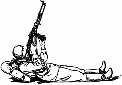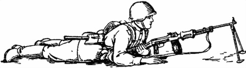 Рис. 41. Положение пулеметчика для стрельбы лежа