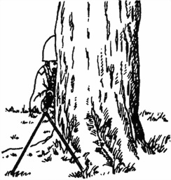 127. Для стрельбы из-за дерева, угла здания и других укрытий пулемет ставить ближе к укрытию так, чтобы часть тела пулеметчика была прикрыта укрытием (рис. 50). При стрельбе из-за небольшого укрытия (окоп для стрельбы лежа, бугорок, кочка) сошку следует ставить позади укрытия так, чтобы поверх укрытия выступал только ствол пулемета.