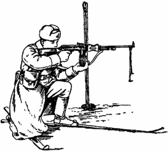 133. Стрельба с лыж может вестись из пулемета с места (лежа, с колена, стоя) и в движении.