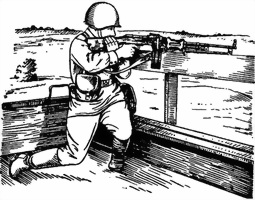 124. В зависимости от высоты упора или укрытия пулеметчик должен принять положение для стрельбы: лежа, с колена или стоя.