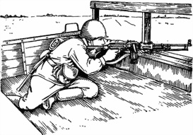 141. Для стрельбы из-за местных предметов использовать по возможности местный предмет в качестве упора и принять положение для стрельбы как удобнее (стоя, полусогнувшись, с колена).