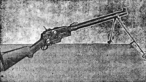 Пулеметомъ называется такое автоматическое оружiе, которое даетъ возможность производить весьма скорую и мѣткую стрѣльбу ружейными патронами. Получающаяся при выстрѣлѣ отдача служитъ для производства всѣхъ дѣйствiй, необходимыхъ для новаго заряжанiя, а именно: выбрасыванiе гильзы, введенiе въ патронникъ новаго патрона и воспламененiе капсюля патрона. Благодаря этому скорость стрѣльбы изъ такого ружья доходитъ до 200 выстрѣловъ въ минуту. Ружье-пулеметъ можетъ стрѣлять какъ одиночными выстрѣлами, такъ и непрерывно выстрѣлъ за выстрѣломъ, при чемъ для производства стрѣльбы стрѣлку остается только нажимать на спускъ. Отличiе настоящаго образца ружья – пулемета отъ пулемета состоитъ въ томъ, что при стрѣльбѣ линiя прицѣливанiя смѣщается, и стрѣлку надо все время наводить, пулеметъ же стрѣляетъ съ неподвижнаго станка.
