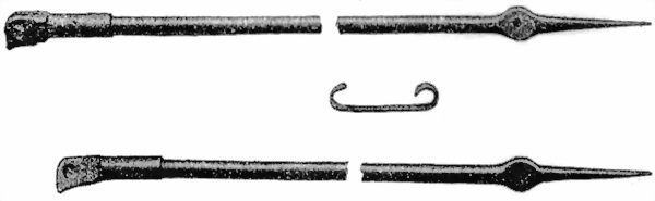 1) Для чистки канала ствола – длинный шомполъ; онъ иметъ рукоятку на одномъ концѣ и прорѣзи для укрѣпленiя палки на другомъ.