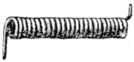 Колѣнчатая пружина имѣетъ пятку, выступъ и завинтованную дыру для винта, которымъ пружина скрѣпляется съ планкой.