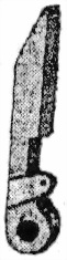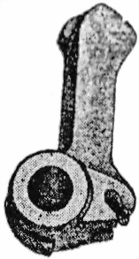 55. Курокъ (фиг. 47) назначенъ для производства удара по ударнику для воспламененiя капсюля патрона, Онъ имѣетъ круглое отверстiе для надѣванiя на боевую ось; головку, которая бьетъ по ладыжкѣ ствольной коробки и которая, скользя по полукруглому скосу хвостовой планки, взводитъ курокъ на боевой взводъ. Сзади курокъ имѣетъ проушины для соединенiя курка со стержнемъ боевой пружины. Снизу курокъ имѣетъ выступъ – боевой взводъ.